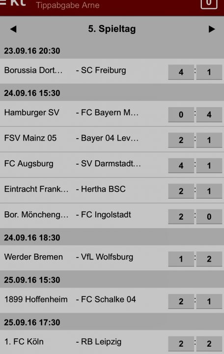 Die Ergebnisprognosen für den 5. Spieltag der Bundesliga Saison 2016/2017: