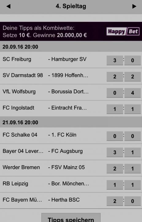 Die Ergebnisprognosen für den 4. Spieltag der Bundesliga Saison 2016/2017: